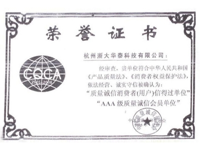 AAA級質(zhì)量證書